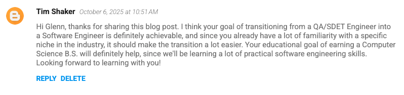 I may want to pursue a master’s degree after completing CS Online, or I may end up getting a job that keeps me busy learning new things, or maybe both. I’m definitely a proponent of lifelong learning, so I’m sure I’ll keep on learning no matter what. This program should help me to reach the next step in my journey, whatever that may be.
