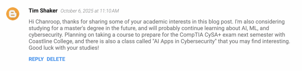 After reflecting on the interview, I have a better understanding of my career options and the direction that the industry is headed. I’m glad to see that CSUMB alumni are doing well in their careers, working on useful products that have a real impact. I agree with Scott that AI is changing how people make software, and it’s important to challenge yourself to keep growing.
