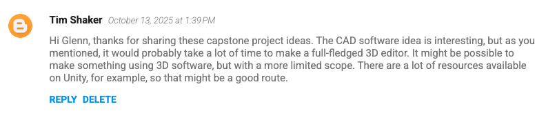 After reviewing the capstone festival, here are a few ideas for potential capstone projects: